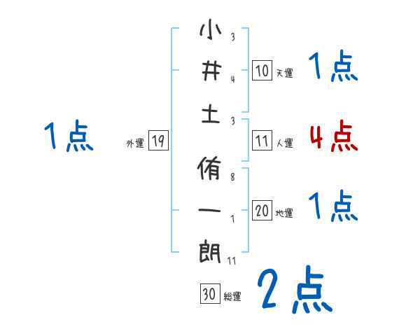 外運![]() | 小井土侑一朗さんの外運は19画の1つ星!優れた才能を持ちますが、協調性が足りないことも。周りの人と協力する事を意識しましょう。 生活面を象徴する運勢です。外部から受ける影響力を表し、結婚運、家庭運や職場、環境への順応性を表します。 |