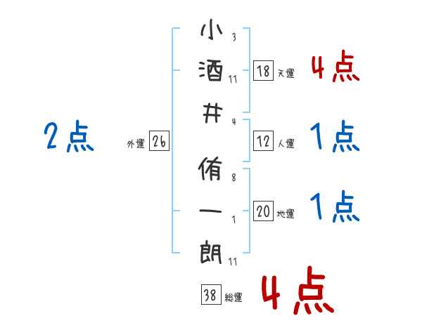 小酒井侑一朗さんの画数の鑑定結果