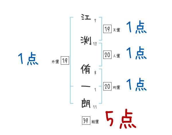 外運![]() | 江渕侑一朗さんの外運は19画の1つ星!優れた才能を持ちますが、協調性が足りないことも。周りの人と協力する事を意識しましょう。 生活面を象徴する運勢です。外部から受ける影響力を表し、結婚運、家庭運や職場、環境への順応性を表します。 |
