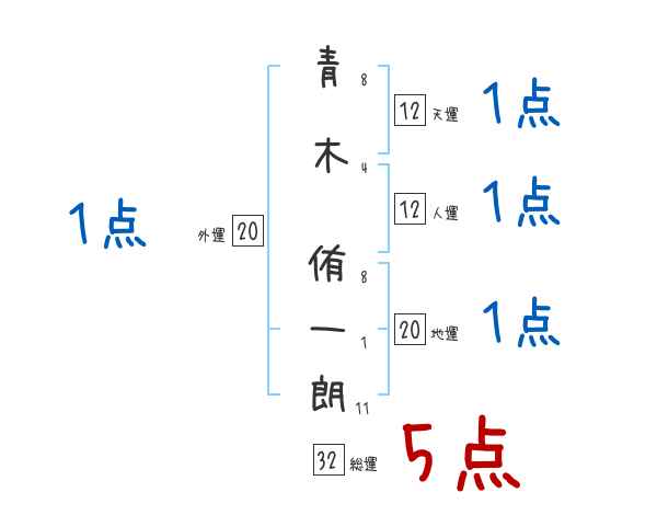 総運![]() | 青木侑一朗さんの総運は32画の5つ星!柔軟性があり成功する。チャンスが多く金運が良い。 あなたの人生を表す1番重要な運勢です。生涯を通じて影響する総合運となり、主に50歳以降の晩年期に影響を及ぼします。 |