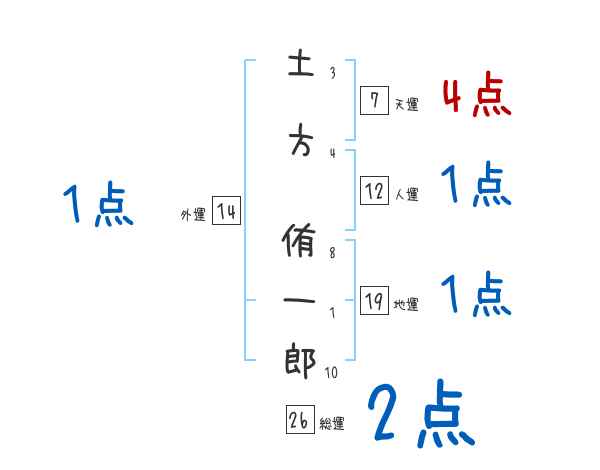 天運![]() | 土方侑一郎さんの天運は7画の4つ星!強い意志や信念を持ち独立心が強い。自立する。 家系が持つ宿命的な運勢を表します。祖先から受け継いだ苗字ですので自分の力が及びません。家柄を象徴します。 |