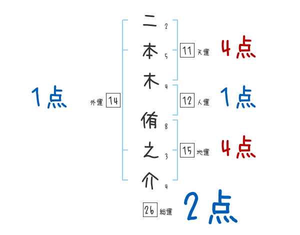 天運![]() | 二本木侑之介さんの天運は11画の4つ星!着実に富や地位を得る幸運な人生。 家系が持つ宿命的な運勢を表します。祖先から受け継いだ苗字ですので自分の力が及びません。家柄を象徴します。 |