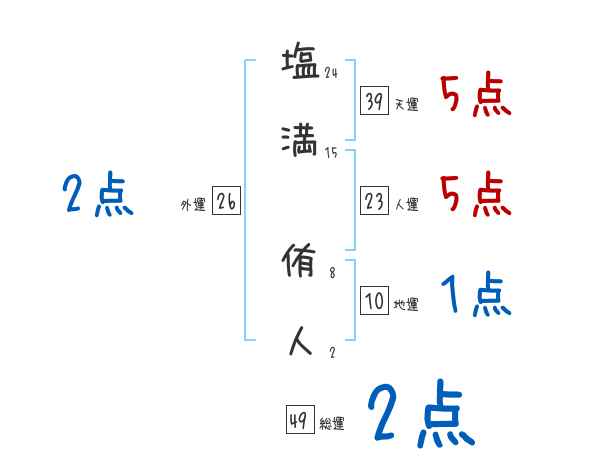 塩満侑人さんの画数の鑑定結果