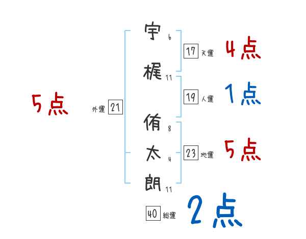 外運![]() | 宇梶侑太朗さんの外運は21画の5つ星!統率力がある。独立し成功する。名誉を手に入れる。 生活面を象徴する運勢です。外部から受ける影響力を表し、結婚運、家庭運や職場、環境への順応性を表します。 |