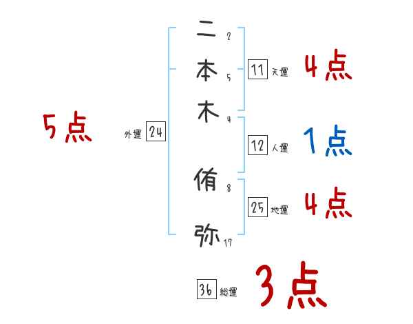 総運![]() | 二本木侑弥さんの総運は36画の3つ星!先見性が豊かです。多少神経質で苦労することも。 あなたの人生を表す1番重要な運勢です。生涯を通じて影響する総合運となり、主に50歳以降の晩年期に影響を及ぼします。 |