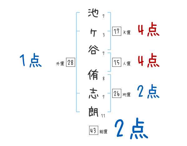 池ヶ谷侑志朗さんの画数の鑑定結果