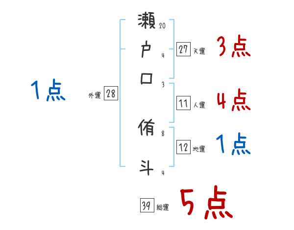外運![]() | 瀬戸口侑斗さんの外運は28画の1つ星!家庭環境に注意。スポーツで活躍できる能力があるかも。 生活面を象徴する運勢です。外部から受ける影響力を表し、結婚運、家庭運や職場、環境への順応性を表します。 |