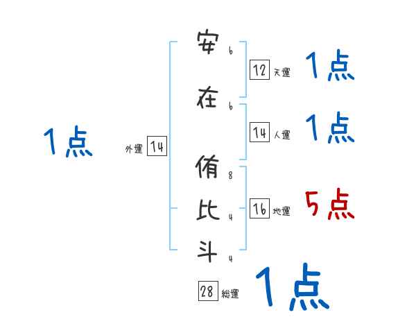 天運![]() | 安在侑比斗さんの天運は12画の1つ星!簡単な失敗で諦めてしまいやすいかも。着実に行動すると良いでしょう。 家系が持つ宿命的な運勢を表します。祖先から受け継いだ苗字ですので自分の力が及びません。家柄を象徴します。 |