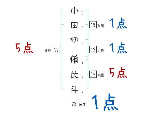 小田切侑比斗さんの画数の鑑定結果