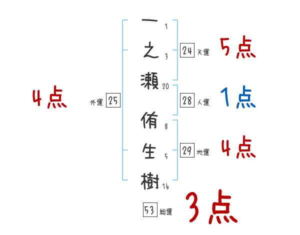 一之瀬侑生樹さんの画数の鑑定結果