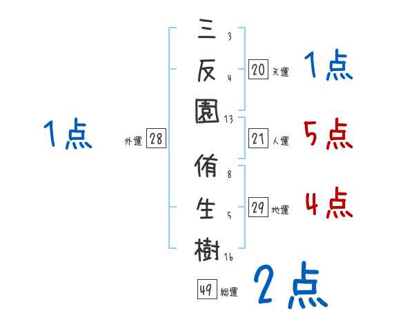 人運![]() | 三反園侑生樹さんの人運は21画の5つ星!統率力がある。独立し成功する。名誉を手に入れる。 性格や才能などを表す2番目に重要な運勢です。人間関係や協調性、社会的な成功に影響します。主に20歳から50歳ぐらいまでの中年期の運勢を表します。 |
