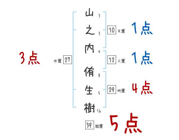 山之内侑生樹さんの画数の鑑定結果