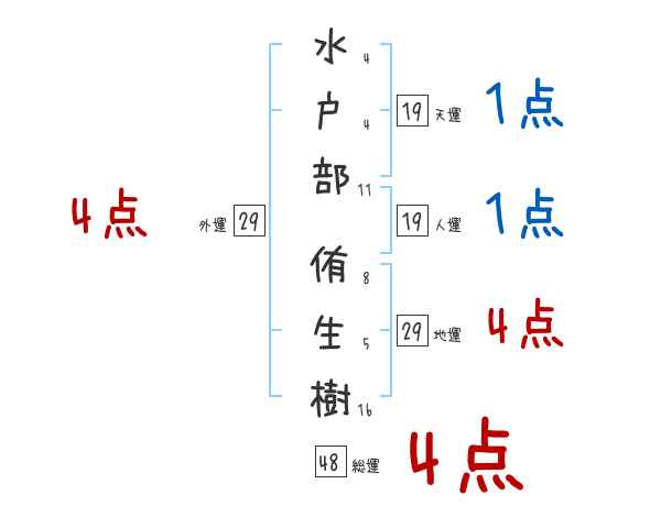 水戸部侑生樹さんの画数の鑑定結果
