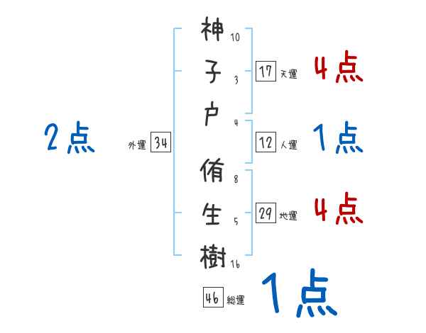 天運![]() | 神子戸侑生樹さんの天運は17画の4つ星!積極的な行動力。地位を気づき財産を手に入れる。純粋な心と直感力。 家系が持つ宿命的な運勢を表します。祖先から受け継いだ苗字ですので自分の力が及びません。家柄を象徴します。 |