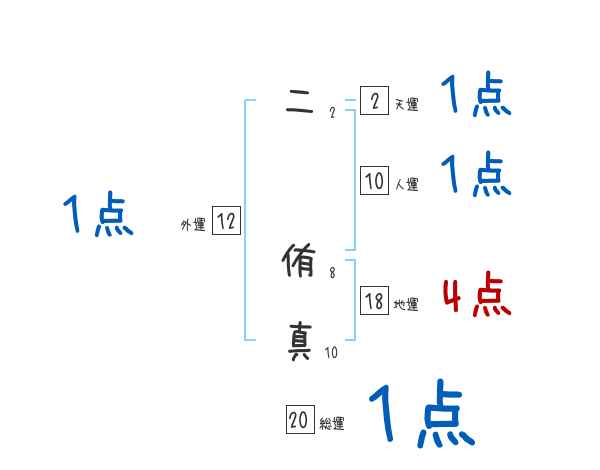 二侑真さんの画数の鑑定結果