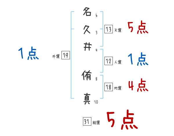 外運![]() | 名久井侑真さんの外運は19画の1つ星!優れた才能を持ちますが、協調性が足りないことも。周りの人と協力する事を意識しましょう。 生活面を象徴する運勢です。外部から受ける影響力を表し、結婚運、家庭運や職場、環境への順応性を表します。 |