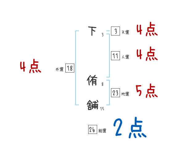 下侑舗さんの画数の鑑定結果