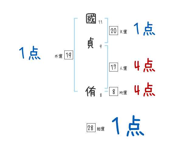國貞侑さんの画数の鑑定結果