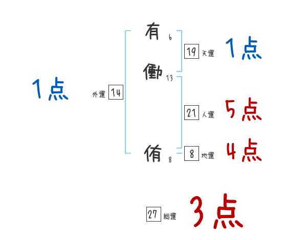 有働侑さんの画数の鑑定結果
