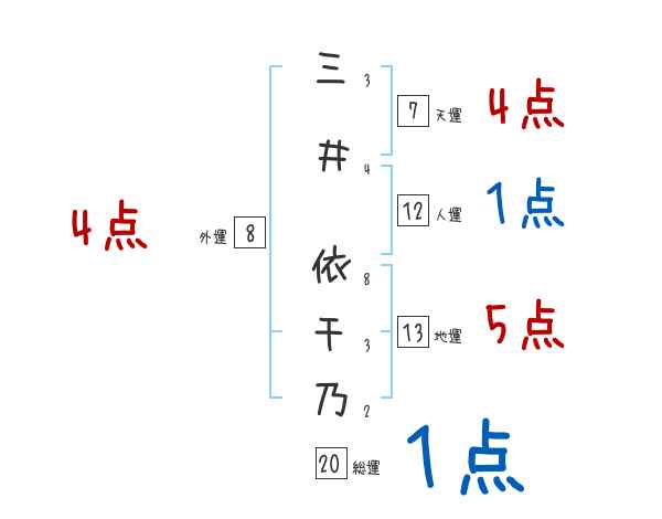 天運![]() | 三井依千乃さんの天運は7画の4つ星!強い意志や信念を持ち独立心が強い。自立する。 家系が持つ宿命的な運勢を表します。祖先から受け継いだ苗字ですので自分の力が及びません。家柄を象徴します。 |