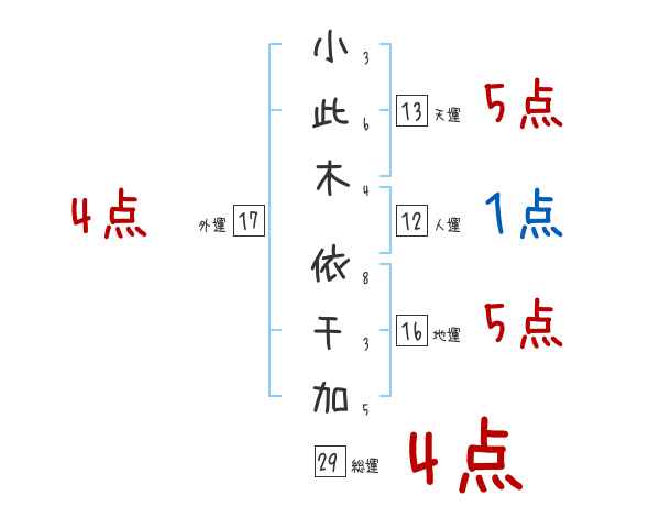 小此木依千加さんの画数の鑑定結果