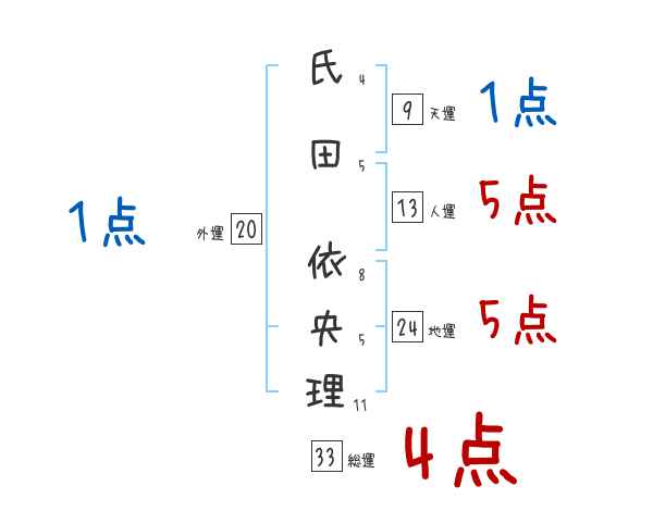 総運![]() | 氏田依央理さんの総運は33画の4つ星!権力志向でプライドが高い。勇気があり運を切り開き成功する。 あなたの人生を表す1番重要な運勢です。生涯を通じて影響する総合運となり、主に50歳以降の晩年期に影響を及ぼします。 |