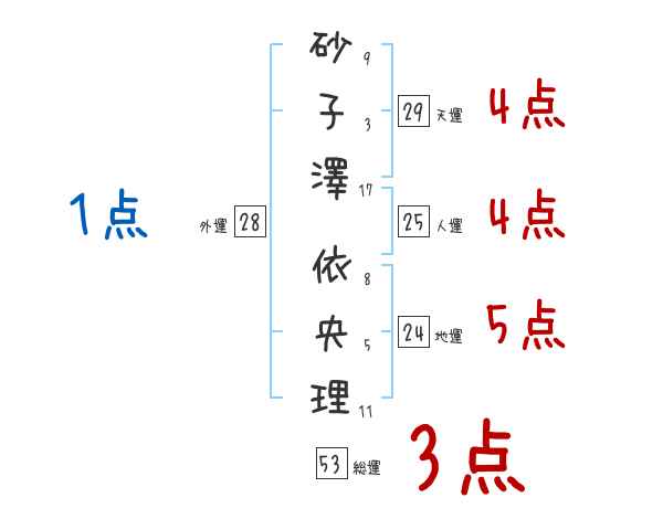 外運![]() | 砂子澤依央理さんの外運は28画の1つ星!家庭環境に注意。スポーツで活躍できる能力があるかも。 生活面を象徴する運勢です。外部から受ける影響力を表し、結婚運、家庭運や職場、環境への順応性を表します。 |