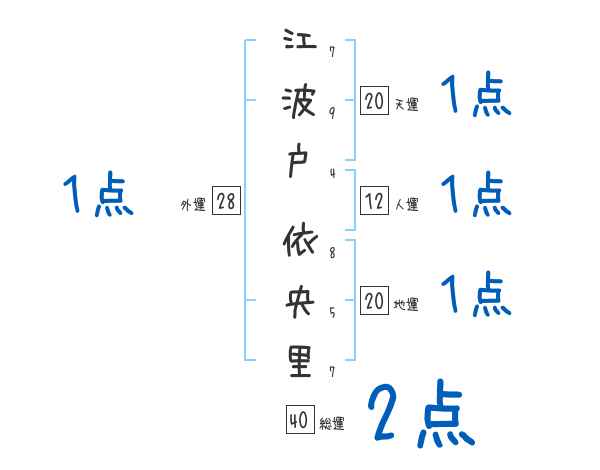 江波戸依央里さんの画数の鑑定結果