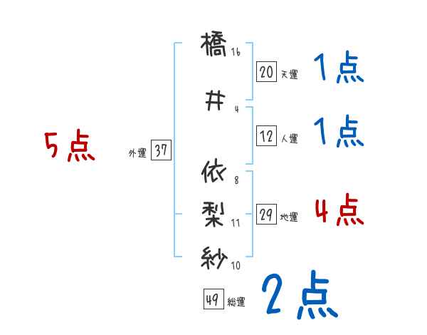 外運![]() | 橋井依梨紗さんの外運は37画の5つ星!努力家で順応性に優れる。現実的な考え方ができ忠実に物事をこなす。 生活面を象徴する運勢です。外部から受ける影響力を表し、結婚運、家庭運や職場、環境への順応性を表します。 |