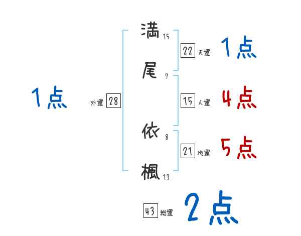 満尾依楓さんの画数の鑑定結果