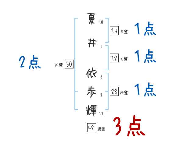 夏井依歩輝さんの画数の鑑定結果