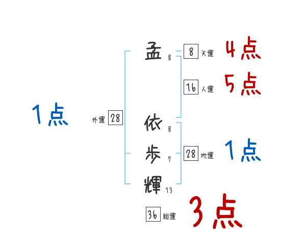孟依歩輝さんの画数の鑑定結果
