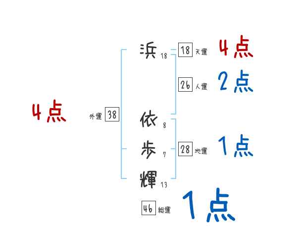 天運![]() | 浜依歩輝さんの天運は18画の4つ星!情熱的で剛気。忍耐力があり信頼される。 家系が持つ宿命的な運勢を表します。祖先から受け継いだ苗字ですので自分の力が及びません。家柄を象徴します。 |