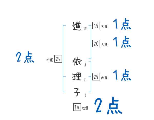 天運![]() | 進依理子さんの天運は12画の1つ星!簡単な失敗で諦めてしまいやすいかも。着実に行動すると良いでしょう。 家系が持つ宿命的な運勢を表します。祖先から受け継いだ苗字ですので自分の力が及びません。家柄を象徴します。 |