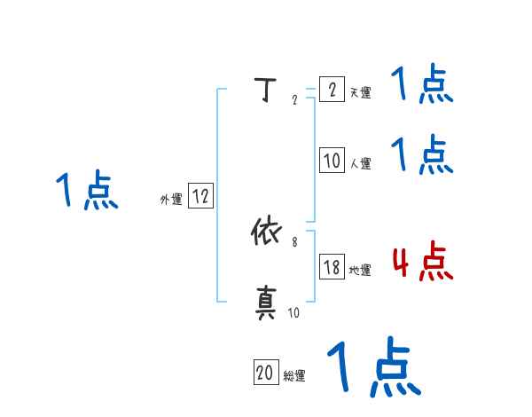 天運![]() | 丁依真さんの天運は2画の1つ星!優しいですが積極性や意思の強さに欠ける傾向があります。家庭環境の乱れに注意しましょう。 家系が持つ宿命的な運勢を表します。祖先から受け継いだ苗字ですので自分の力が及びません。家柄を象徴します。 |