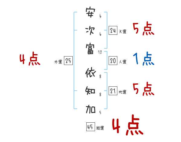 安次富依知加さんの画数の鑑定結果