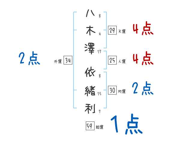八木澤依緒利さんの画数の鑑定結果