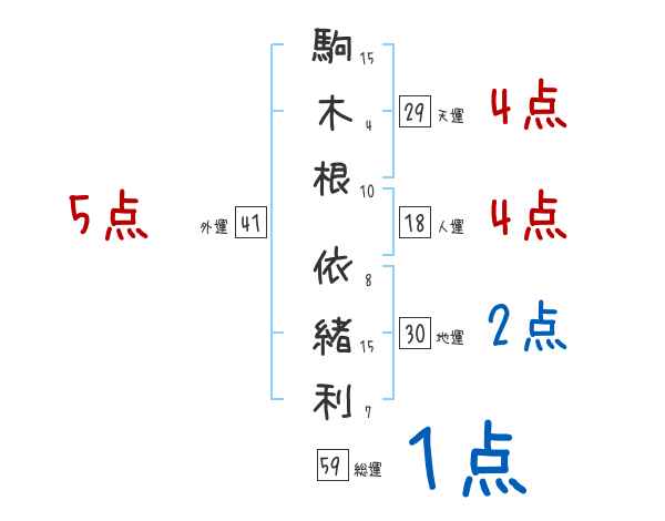 天運![]() | 駒木根依緒利さんの天運は29画の4つ星!完全主義で才能がある。厳格な心の持ち主。 家系が持つ宿命的な運勢を表します。祖先から受け継いだ苗字ですので自分の力が及びません。家柄を象徴します。 |