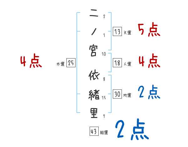 二ノ宮依緒里さんの画数の鑑定結果