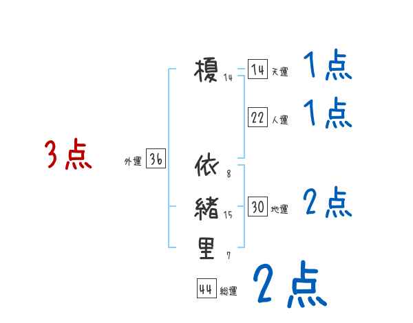 外運![]() | 榎依緒里さんの外運は36画の3つ星!先見性が豊かです。多少神経質で苦労することも。 生活面を象徴する運勢です。外部から受ける影響力を表し、結婚運、家庭運や職場、環境への順応性を表します。 |