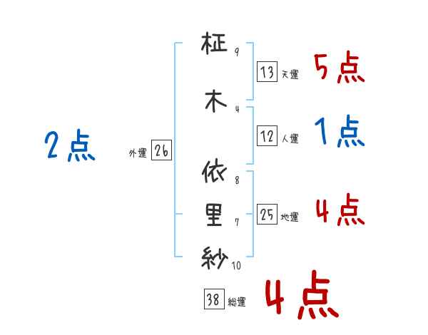 外運![]() | 柾木依里紗さんの外運は26画の2つ星!波瀾万丈かも。信頼できる人を大事にしましょう。 生活面を象徴する運勢です。外部から受ける影響力を表し、結婚運、家庭運や職場、環境への順応性を表します。 |