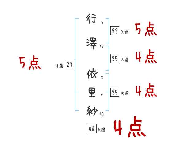 行澤依里紗さんの画数の鑑定結果