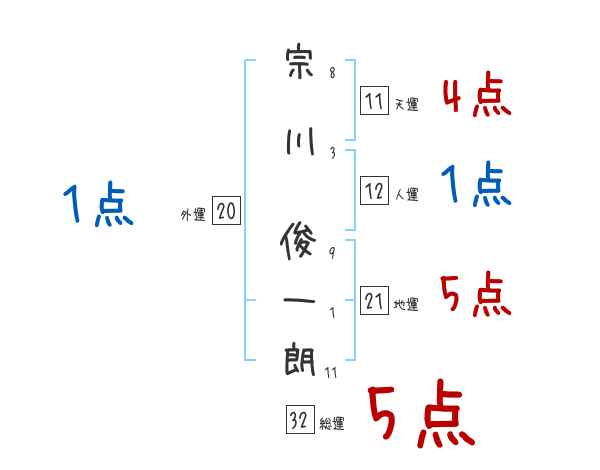 宗川俊一朗さんの画数の鑑定結果