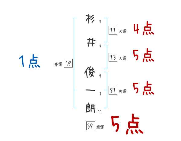 天運![]() | 杉井俊一朗さんの天運は11画の4つ星!着実に富や地位を得る幸運な人生。 家系が持つ宿命的な運勢を表します。祖先から受け継いだ苗字ですので自分の力が及びません。家柄を象徴します。 |