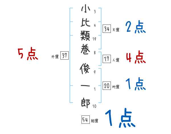 外運![]() | 小比類巻俊一郎さんの外運は37画の5つ星!努力家で順応性に優れる。現実的な考え方ができ忠実に物事をこなす。 生活面を象徴する運勢です。外部から受ける影響力を表し、結婚運、家庭運や職場、環境への順応性を表します。 |
