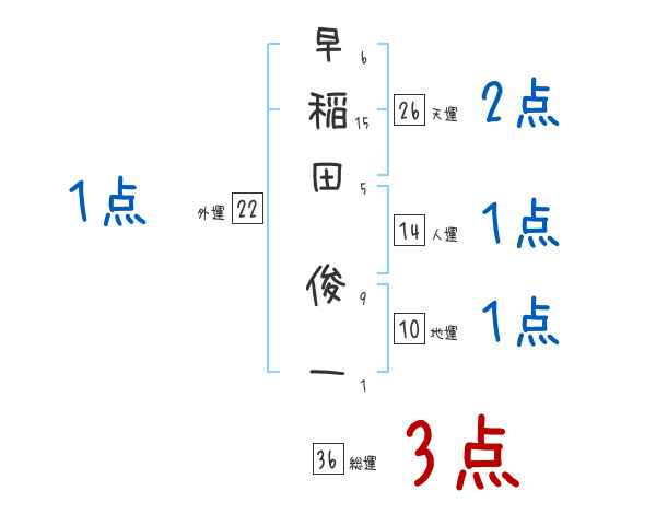外運![]() | 早稲田俊一さんの外運は22画の1つ星!努力することが苦手ないっぽう手先が器用。芸術性にも優れる。 生活面を象徴する運勢です。外部から受ける影響力を表し、結婚運、家庭運や職場、環境への順応性を表します。 |