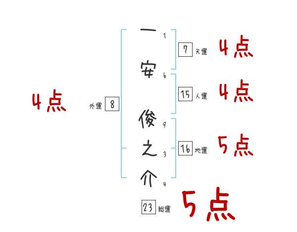 天運![]() | 一安俊之介さんの天運は7画の4つ星!強い意志や信念を持ち独立心が強い。自立する。 家系が持つ宿命的な運勢を表します。祖先から受け継いだ苗字ですので自分の力が及びません。家柄を象徴します。 |