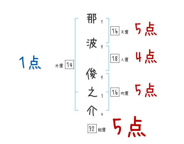 外運![]() | 那波俊之介さんの外運は14画の1つ星!人に対して優しいがストレスを溜め込みがち。人間関係のトラブルを避けるよう気をつけましょう。 生活面を象徴する運勢です。外部から受ける影響力を表し、結婚運、家庭運や職場、環境への順応性を表します。 |