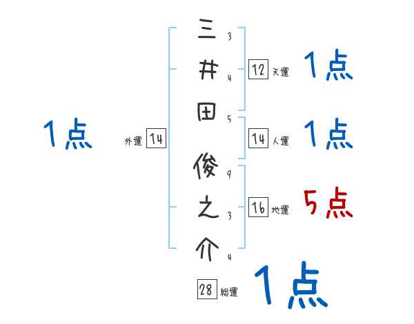 三井田俊之介さんの画数の鑑定結果