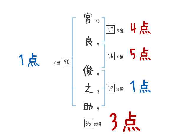 宮良俊之助さんの画数の鑑定結果